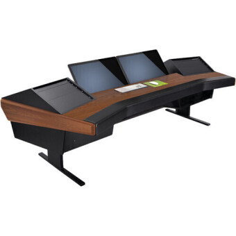 The carl tatz edition Dual 15L Workstation Desk with Two DR800 8 Upper RU from Argosy is designed with an 8 RU angled top to avoid reflections from speakers. It supports a full-size keyboard controller at your fingertips and accommodates two 27” monitors. The chassis design defeats thermal buildup and permits easy cable access. Its steel legs support 19 to 32mm powder-coated MDF components to support your studio equipment. An enclosed utility area separates, conceals, and protects vital gear and cabling.