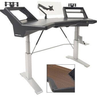 Combine rack gear with stand-alone electronics on shelves specially designed for HALO angled racks. Position near-field monitors on Aperta 160 IsoAcoustics loaded speaker mounts to support up to 70 lb per side. Handy accessory drawer provides convenient storage. CPU mount allows your computer to ride along with sit-stand movement.