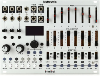 The Intellijel Metropolix is a unique and powerful multitrack Eurorack musical sequencer. With an abundance of hands-on, tactile controls and a wealth of modulation possibilities (both internal and external) you can quickly and easily create infectiously musical sequences that are never boring. Even the simplest melody can be brought to life with seemingly endless options to create variations or real-time manipulations.