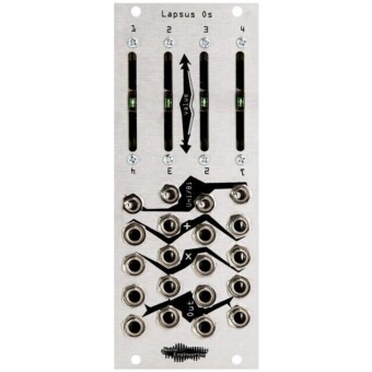 The Noise Engineering Lapsus Os Silver is. 10HP Attenuator/Attenuverter. Off-Set Eurorack Module, with an LED Disaply. Each Channel can operate either Unipolar or Bipolar. If nothing is plugged into an Input, an Off-Set of +/- 5V is generated depending on the Fader position, which is output at 2x Outputs in parallel. If. signal is fed into the circuit via the. Socket, it is Attenuated or Inverted depending on the Fader position and Switch setting.