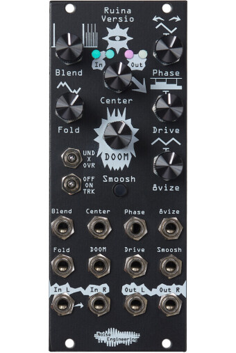 Distortion modules with different distortion types under one roof, are no longer a rarity. However, you can usually only choose between different modes, but not use them simultaneously. Ruina Versio allows the use of different distortion types and layers them on top of each other or into each other. Not only different clipping types are available, but also filters, octaver and a chorus for the sub-octave range. Noise Engineering of course pull out all the stops again and invented the Smoosh switch, which boosts the signal by a devastating 128 dB.