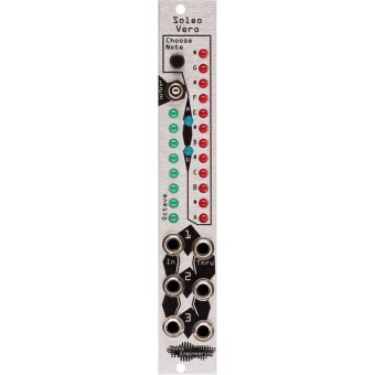 Noise Engineering Soleo Vero is. digital tuner for up to three connected oscillators with optical scaling . First you determine the desired note using the two LED scales in Soleo Vero, then you set the oscillator of the selected input to the corresponding frequency. If there is an exact match, there is an optical feedback and you proceed in the same way with the other two tone generators. In seconds you can adjust up to three VCOs without having to listen to them beforehand.. very practical approach.