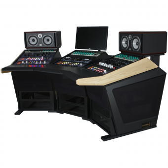 The Plan C console features the same generous gear capacity as the Plan B. The wrap-around shape optimizes your ability to view and adjust the controls while keeping you in the critical sound field.