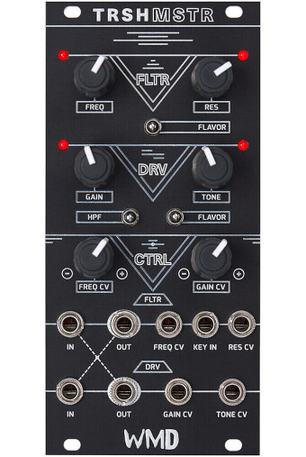 The TRSHMSTR is a collaborative effort between WMD and the electro-dance heavyweights MSTRKRFT. Thanks to separate inputs and outputs, filter and distortion can be used individually or as a team. Cross-normalizations allow you to determine whether VCF or overdrive comes first in the signal flow.